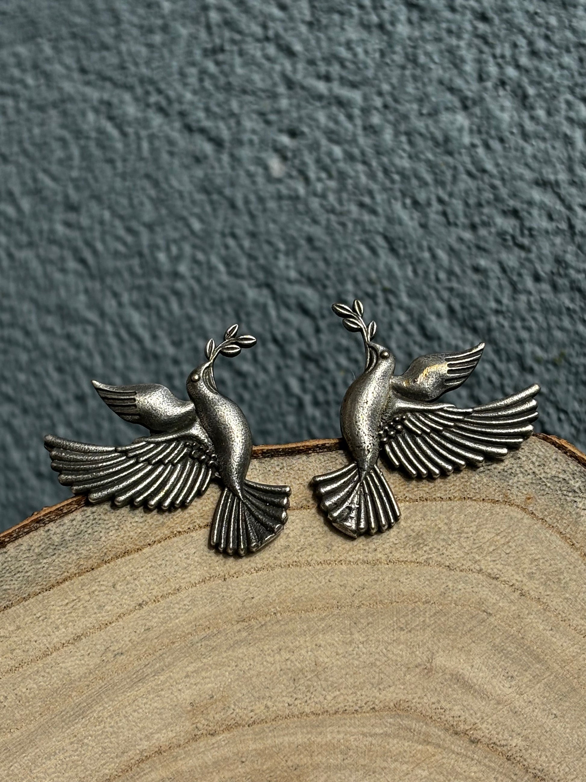 The Serin Earrings are crafted in oxidised brass and shaped into soaring birds with finely detailed wings. Inspired by the elegance of flight, they carry a sense of freedom and grace in their design. Lightweight and easy to wear, the Serin Earrings are a striking piece that adds character and meaning to any look, whether styled with casual wear or an evening outfit.